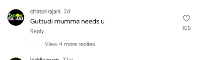 बेटे की मौत के बाद रजनी ने सोशल मीडिया पर एक कमेंट किया और वो कमेंट उन्होंने अपने बेटे की एक पुरानी पोस्ट पर लिखा। जो था- ‘गुटुड़ी मम्मा नीड्स यू।’ इसका स्क्रीनशॉट इंटरनेट पर वायरल हो रहा है।
