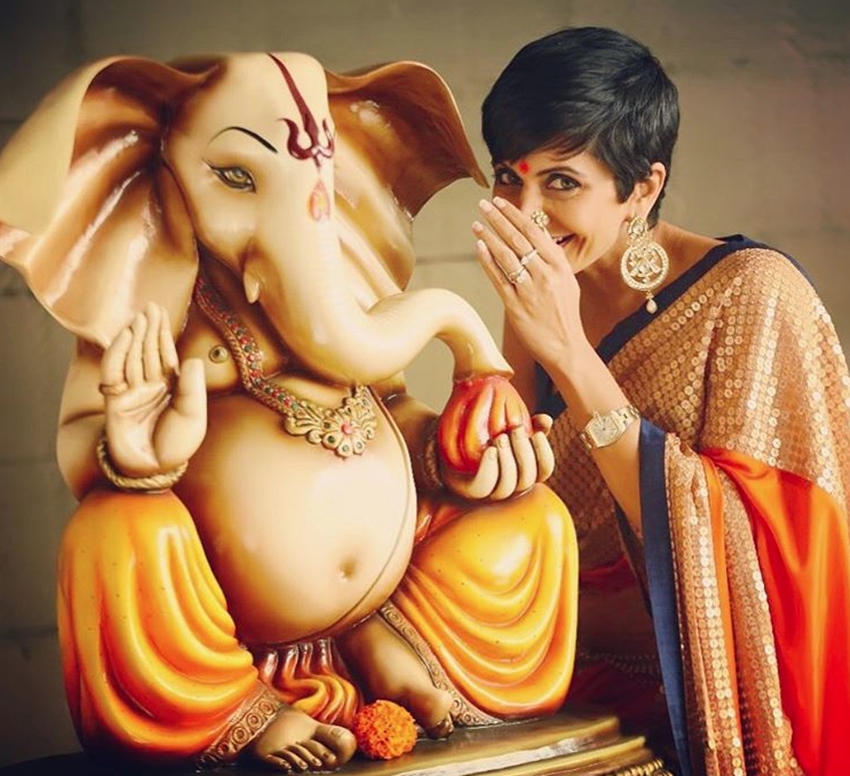 उधर बॉलीवुड एक्ट्रेस मंदिरा बेदी से भी भगवान गणेश की भव्य प्रतिमा के साथ नजर आ रही हैं। उन्होंने गोल्डन साड़ी पहनी हुई है और माथे पर लाल रंग की बिंदी लगाई हुई है।