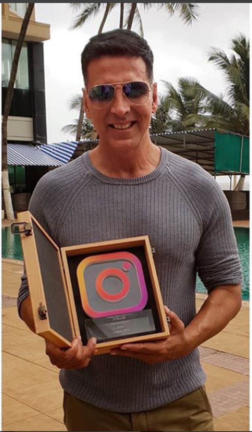 अक्षय कुमार द्वारा शेयर की गई इस तस्वीर को 22 घंटों में तकरीबन 16 लाख से ज्यादा लाइक्स मिल चुके हैं। एक्टर को इंस्टाग्राम की ओर से मिले इस अवॉर्ड के लिए बधाई देने वाले फैन्स की संख्या हजारों में हैं। ग्रे कलर की टी-शर्ट और ब्राउन कलर के पैंट में नजर आ रहे ‘गोल्ड’ एक्टर के चेहरे पर मुस्कान साफ दिखाई पड़ रही है। बता दें कि सलमान खान के इंस्टाग्राम पर 17.9 मिलियन फॉलोवर्स हैं तो वहीं शाहरुख खान के इंस्टा हैंडल पर फॉलोवर्स ही संख्या 13.9 मिलियन है।