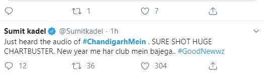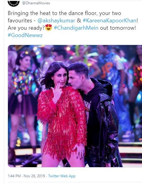 गुड न्यूज फिल्म के चंडीगढ़ में गाने के वीडियो को देखने के लिए फैंस काफी एक्साइटेड हैं। ऐसे में सोशल मीडिया पर इस गाने की धूम मची हुई है। ट्विटर पर ये गाना हैशटैग के साथ ट्रेंड कर रहाहै।