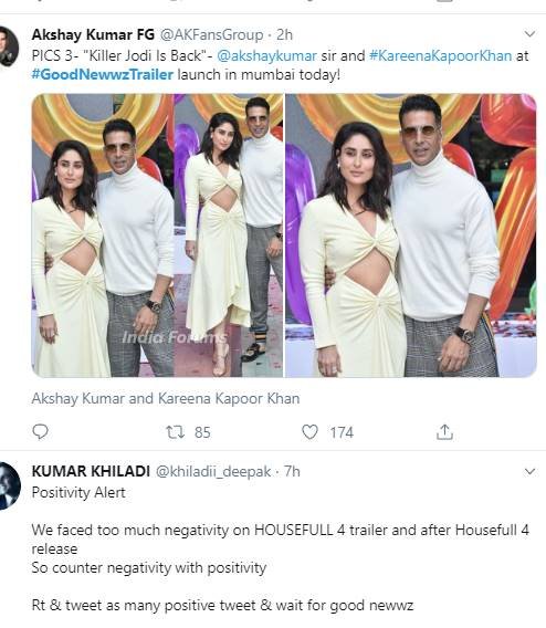 अक्षय की फिल्म हाउसफुल 4 आई थी। इस फिल्म की गुड न्यूज फिल्म ट्रेलर से कंपेरेजन किया जा रहा है। कहा जा रहा है कि फिल्म इसे कहते हैं। देखें और क्या क्या कह रहे फैंस