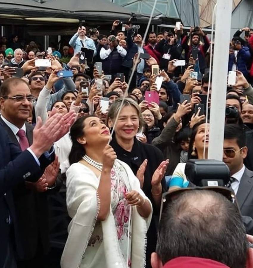 IFFM 2018: पिछले साल ऐश्वर्या राय बच्चन अपनी बेटी आराध्या बच्चन के साथ मेलबर्न IFFM में तिरंगा फहराती नजर आई थीं। इस साल IFFM 2018 (इंडियन फिल्म फेस्टिवल मेलबर्न) में रानी मुखर्जी ने मेलबर्न में तिरंगा फेहराया। साथ ही हजारों ऑस्ट्रेलियन्स और भारतीयों की मौजूदग में एक्ट्रेस रानी के साथ राष्ट्रीयगान भी गाया गया। बता दें, हर साल अगस्त में इस फिल्म फेस्टिवल का आयोजन किया जाता है। IFFM में रानी मुखर्जी को बेस्ट एक्ट्रेस कैटेगरी में रखा गया है। रानी इस खास मौके पर ऑफ व्हाइट फ्लॉरल साड़ी पहन कर पहुंची। एक्ट्रेस ने इस दौरान गले में मोतियों की माला भी सजाई हुई थी। रानी इस इंडियन अवतार में बेहद खूबसूरत लग रही थीं। इस खास मौके पर रानी ने ही तिरंगा फहराया।