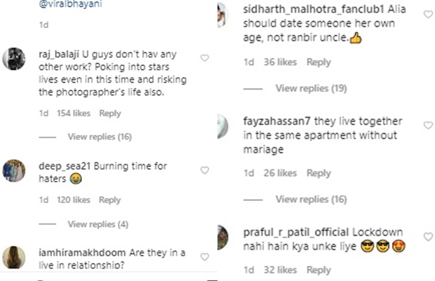 इस बीच कुछ ऐसे लोग भी थे जो कहते नजर आए- ‘आलिया और रणबीर लिन इन में रह रहे हैं क्या?’ तो किसी ने कहा- ‘अरे शादी से पहले एक अपार्टमेंट में रह रहे हैं साथ?’ तो कोई बोला -‘पैपराजी अपने घर जाओ, सुखी रहो औऱों को भी रहने दो।’ एक यूजर कहता- ‘शर्म आनी चाहिए तुम्हें।’