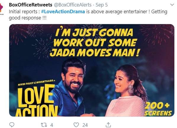 कुछ लोग इस फिल्म के लिए कह रहे हैं कि #LoveActionDrama वह जादू नहीं दिखा पाई जो Nivin Pauly की फिल्मों में होता है। फिल्म का फर्स्टहाफ अच्छा है। सेकिंड हाफ फिल्म को स्पॉइल कर देता है। ऐसे में जो एक्सपेक्टेशन थी वह बुरी तरह टूट गई।