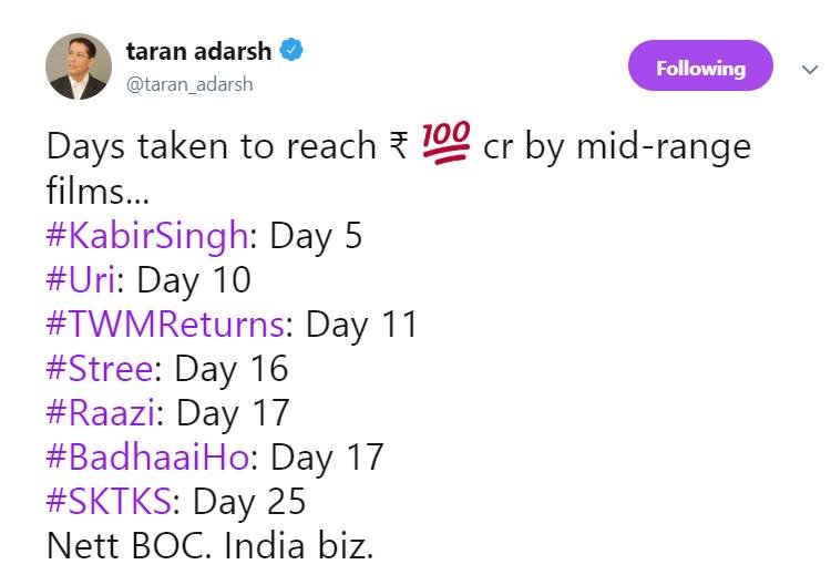 — taran adarsh (@taran_adarsh) June 28, 2019