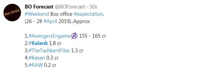 कलंक फिल्म को लेकर लोगों का कहना है कि मेकर्स ने कंटेंट और एडिटिंग अच्छी नहीं की है, इसलिए इसे कम दर्शक मिल रहे हैं। वहीं हॉलीवुड फिल्म अवेंजर्स की जमकर तारीफ हो रही है ।