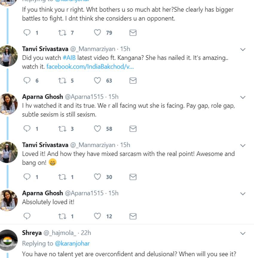 अब करण के इस ट्वीट को लेकर लोगों के मन में काफी कुछ चल रहा है। वहीं ट्विटर पर लोगों का कहना है कि ‘करण कंगना पर ट्वीट करना बंद कीजिए, और इसे मानिए कि आप ऐसे हैं।’ वहीं संध्या नाम की यूजर कहती है, ‘मूवी माफिया, क्या उन्होंने कभी नॉन इंडस्ट्री कास्ट को अपनी फिल्म में लिया, मुझे याद नहीं।’ वहीं काफी यूजर्स ने कंगना के इस वीडियो को सराहा है। लोगों ने कहा कि वाकई इंडस्ट्री में एक्ट्रेसिस के साथ ऐसा होता है।