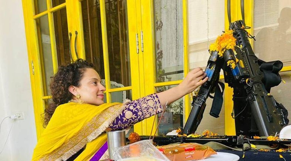 बॉलीवुड एक्ट्रेस कंगना रनौत ने दशहरे पर अपने सुरक्षाकर्मियों के साथ शस्त्र पूजा की थी। जिसकी तस्वीरें एक्ट्रेस ने सोशल मीडिया पर शेयर की हैं। उनके फैंस को कंगना की तस्वीरें काफी पसंद आईं, वहीं तमाम लोग उन्हें ट्रोल भी कर रहे हैं।
