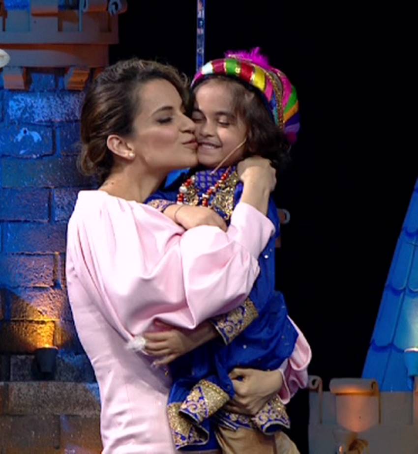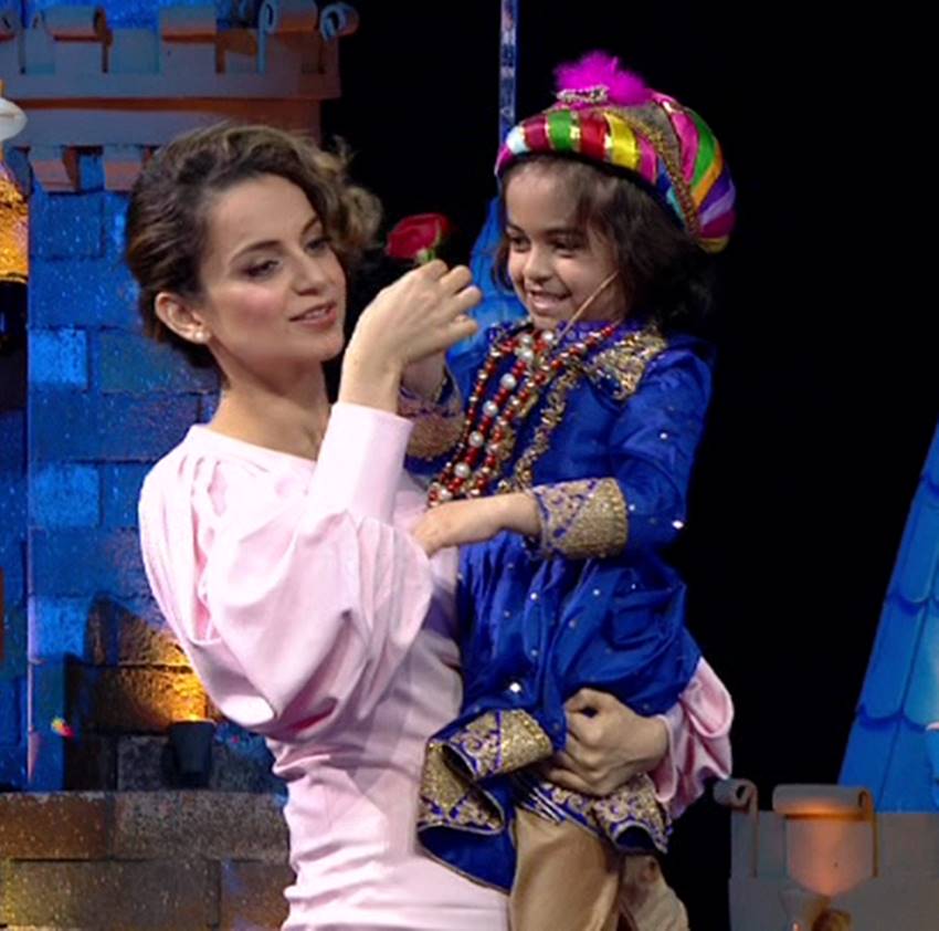 लोग कंगान रनौत को उनके हर चीजे के लिए अनसेंसर्ड रवैये के लिए जानते हैं। जब कंगना को पता चला कि एक छोटा बच्चा उनसे बहुत प्यार करता है तो वो अपनी भावनाएं रोक नहीं पाईं। एक्ट्रेस टीवी रिएलिटी शो छोटे मियां धाकड़ के लॉन्च पर गेस्ट के तौर पर पहुंची थी। उन्हें कयान गादिया काफी पसंद आया। कयान ने लाल गुलाब होथों में लेकर कंगना को प्रपोज करते हुए कहा- आई लव यू। रंगून एक्ट्रेस उसके एक्सप्रेशन से इतनी प्रभावित हुई कि उन्होंने कहा मैं भी तुमसे प्यार करती हूं और उसे टाइट हग दिया। छोटे मियां धाकड़ बच्चों का स्टैंड अप कॉमेडी शो है जिसे लाफ्टर क्वीन भारती सिंह होस्ट करेंगी जबकि नेहा धूपिया और सोहेल जज के तौर पर नजर आएंगे। एक एपिसोड के लिए कंगना गेस्ट के तौर पर आई थीं।