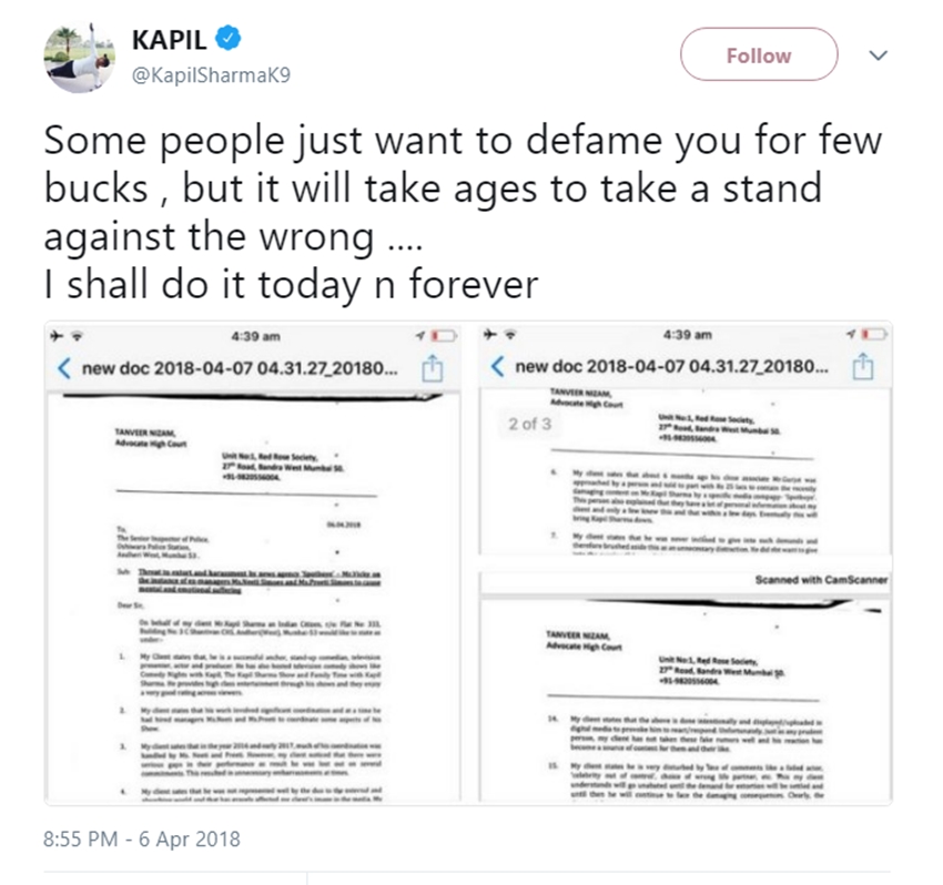 — Kapil Sharma (@KapilSharmaK9) April 7, 2018