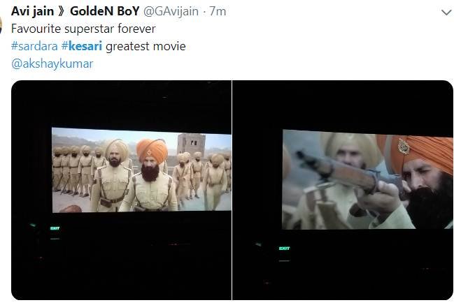 अक्षय कुमार की केसरी दर्शकों को इतनी पसंद आ रही है कि वह एक बार नहीं बल्कि तीन-तीन बार फिल्म को देखने के लिए सिनेमाघरों में पहुंच रहे हैं। एक ट्विटर यूजर ने लिखा कि मैं आज तीसरी बार फिल्म को देखने के लिए आया हूं।