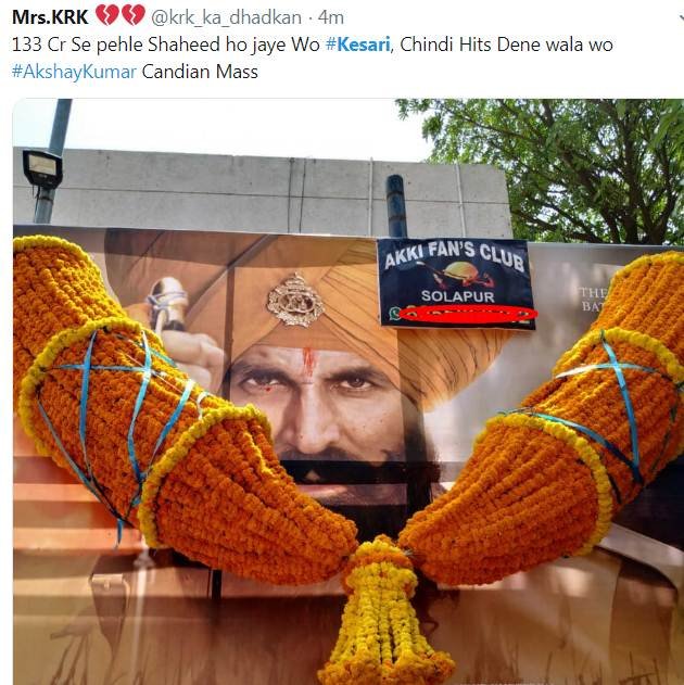 फैन्स का आरोप है कि केसरी को जितना अच्छा बॉक्स ऑफिस पर प्रदर्शन करना चाहिए था उसका 50 प्रतिशत भी नहीं किया। अक्षय के फैन्स का कहना है कि आईपीएल के कारण फिल्म को भारी नुकसान उठाना पड़ा है।