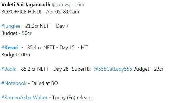 — taran adarsh (@taran_adarsh) April 4, 2019