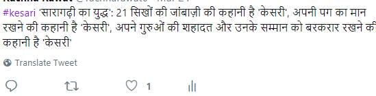 21 सिख सिपाहियों का गुणगान करती 'केसरी'
