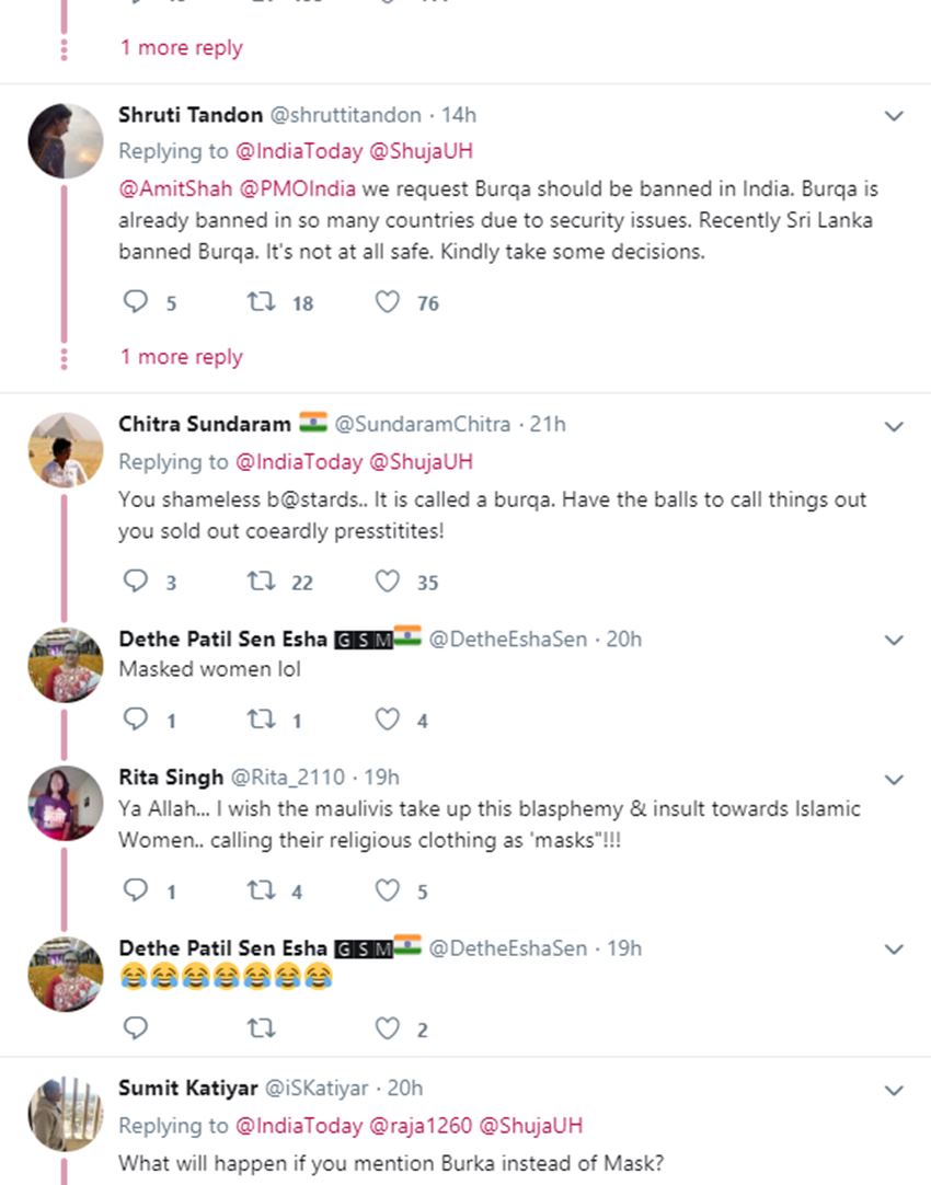 ज्यादातर लोग बुर्के को मास्क न कहने की अपील करते नजर आए।