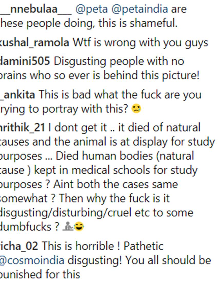 एक यूजर इस तस्वीर को देख कर लिखता है- यह लोग बिलकुल गलत कर रहे हैं शेमलेस पीपल। एक यूजर ने लिखा-तुम्हारे साथ दिक्कत क्या है? एक यूजर लिखता गएगुजरे बिना दिमाग के लोग। तो दूसरा यूजर लिखता- इस तरह की क्रूल तस्वीर खींच कर क्या साबित करना चाहते हो? यह बहुत घटिया और शर्मनाक है।