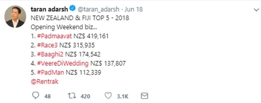 खराब रिव्यूज से इतर, इस साल की सबसे अधिक कमाई करने वाली फिल्म रेस-3 ही बनी है। रणवीर सिंह स्टारर पद्मावत और टाइगर श्रॉफ स्टारर बागी को भी इसने पीछे छोड़ा और पहले दिन तकरीबन 29 करोड़ रुपए जुटाए।