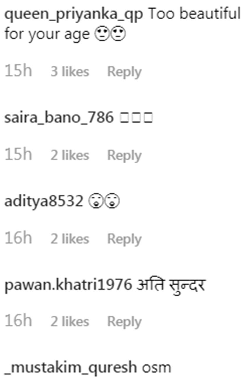 तस्वीर पर कमेंट करते हुए एक यूजर ने लिखा- मुझे आपकी बातें करती हुई आंखें पसंद आईं। वहीं एक अन्य यूजर ने लिखा- अब तुम जान लेकर रहोगी। एक इंस्टाग्राम यूजर लिखता है- यह तस्वीर अलग है और खूबसूरती का उदाहरण भी है। एक यूजर ने लिखा- हर तस्वीर कुछ कहती है, शानदार।
