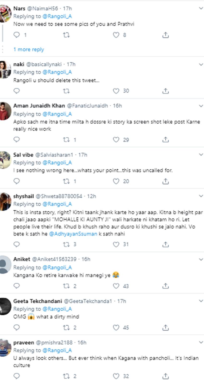 एक फैन मजे लेते हुए कहता- कंगना रनौत को रिटायर करके ही मानोगी। तो एक यूयजर ने रंगोली के इस पोस्ट को देख कर कहा- अरे कितना गंदा माइंड है। वहीं क यूजर बोलता- ‘आप हमेशा दूसरों को देखती हैं। लेकिन कभी भी कंगना और पंचोली को नहीं देखती। क्या ये इंडियन कल्चर है?’