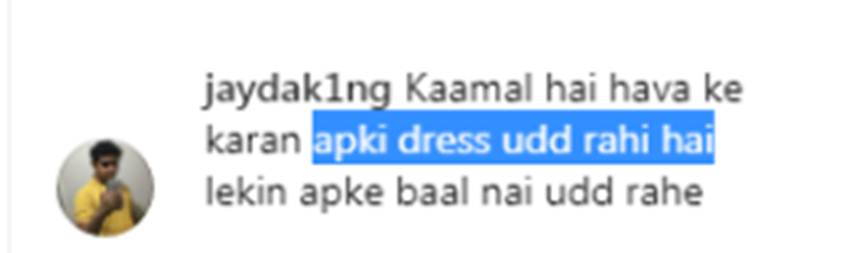 मलाइका अरोड़ा तस्वीरों में येलो कलर की ड्रेस पहने हुए नजर आ रही हैं। मलाइका की ड्रेस हवा में लहराती रही है। मलाइका की तस्वीरों को देखकर लोग उनके जमकर मजे ले रहे हैं। एक यूजर ने लिखा कि कितनी भी फैशन कर ले रहेगी बुड्ढी ही। वहीं एक अन्य यूजर लिखता है कि आपकी ड्रेस उड़ रही है लेकिन आपके बाल नहीं। वहीं बोनी कपूर ऑफिशियल नाम के एक ट्विटर यूजर ने लिखा- मैं अपने जायदाद से एक फूटी कौड़ी नहीं दूंगा अर्जुन को। एक इंस्टा यूजर ने लिखा- आंटी आपका फैन कुछ ज्यादा ही स्पीड में हैं। एक कमेंट में यूजर ने लिखा- मैडम आपकी ड्रेस उड़ रही है, पकड़ लो।