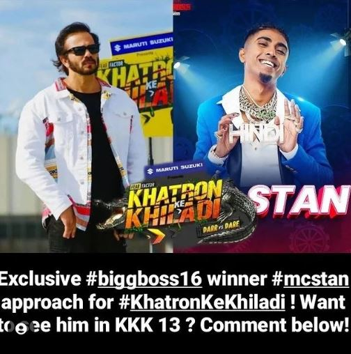 बिग बॉस खबरी ने इंस्टाग्राम पर इस बात की जानकारी दी है कि एमसी स्टैन को Khatro Ke Khiladi के लिए अप्रोच किया गया है। वह 13वें सीजन में नजर आ सकते हैं। हालांकि इसमें किसी तरह की कोई आधिकारिक पुष्टि नहीं हो पाई है और न ही स्टैन की तरफ से इसपर कोई बयान आया है। इसके अलावा कहा ये भी जा रहा है कि प्रियंका चाहर चौधरी और अर्चना गौतम को भी इस शो के लिए अप्रोच किया गया है।