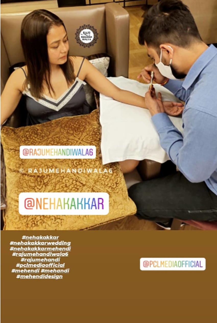 हाथों में रोहनप्रीत के नाम की मेहंदी लगातीं नेहा कक्कड़..