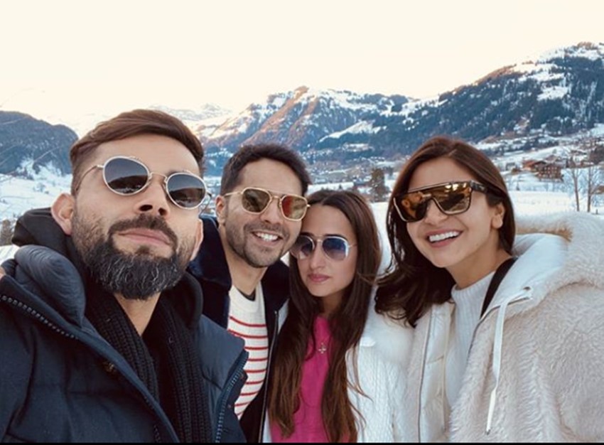 विराट-अनुष्का,नताशा और वरुण धवन साथ में एक फ्रेम में।