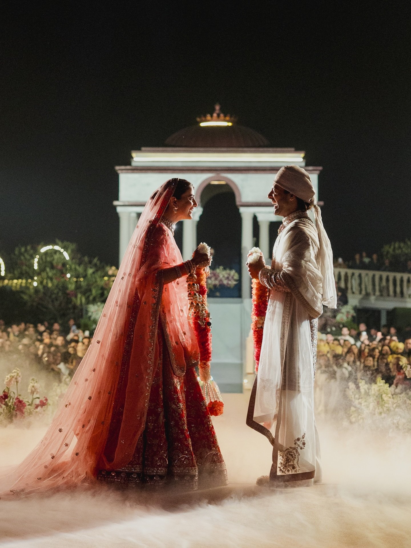 वरमाला पहनाने की इस तस्वीर में नूपुर और स्टेबिन एक-दूसरे को वरमाला पहना रहे हैं, और इस दौरान दोनों हंसते हुए अपने पार्टनर को निहारते नजर आ रहे हैं। उनके चेहरों पर खुशी साफतौर पर देखने को मिल रही है।