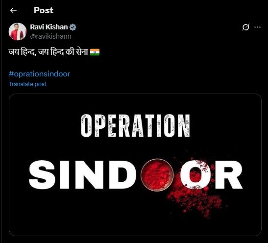अभिनेता रवि किशन ने लिखा- जय हिंद, जय हिंद की सेना।