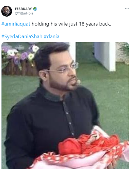 इस पोस्ट पर यूजर ने लिखा है, ”आमिर लियाकत 18 साल पहले अपनी पत्नी को थामे हुए।” इसके अलावा भी इन दोनों को लेकर कई मीम्स बनाए जा रहे हैं।