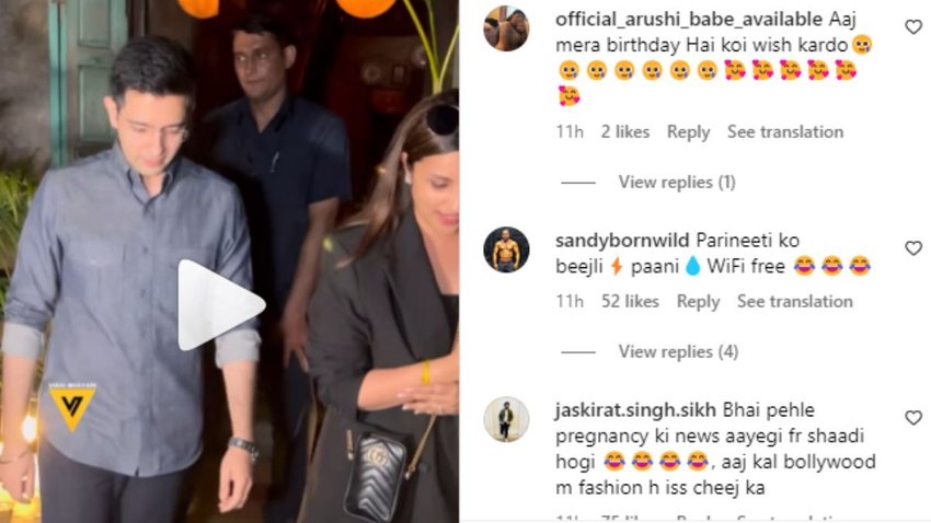 अगर परिणीति और राघव चड्ढा के वीडियो पर लोगों के रिएक्शन्स की बात की जाए तो लोग इस पर खूब प्रतिक्रियाएं दे रहे हैं। एक ने चुटकी लेते हुए लिखा, ‘परिणीति को बिजली, पानी, वाइफाई फ्री।’ दूसरे ने लिखा, ‘भाई पहले प्रेग्नेंसी की न्यूज आएगी फिर शादी होगी। आजकल बॉलीवुड में फैशन है इस चीज का।’ इसके साथ ही कुछ यूजर्स दोनों को बार-बार साथ में देखकर ऊब गए हैं।