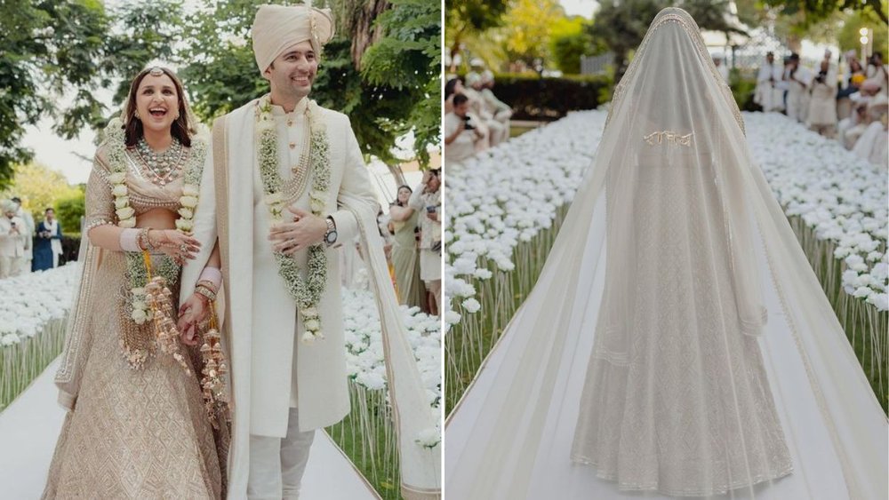 परिणीति चोपड़ा के लहंगे में डिजाइन तो कमाल का है ही, जो इसे खास बनाता है। साथ ही ये और भी स्पेशल तब हो गया जब एक्ट्रेस के दुपट्टे पर उनके पति राघव का नाम लिख गया। दरअसल, परिणीति ने लहंगे के साथ जो चुनरी कैरी की थी इस पर दूल्हे का नाम लिखा गया था। इस लिखने के लिए भी पुराने सोने के धागे का इस्तेमाल किया गया है।