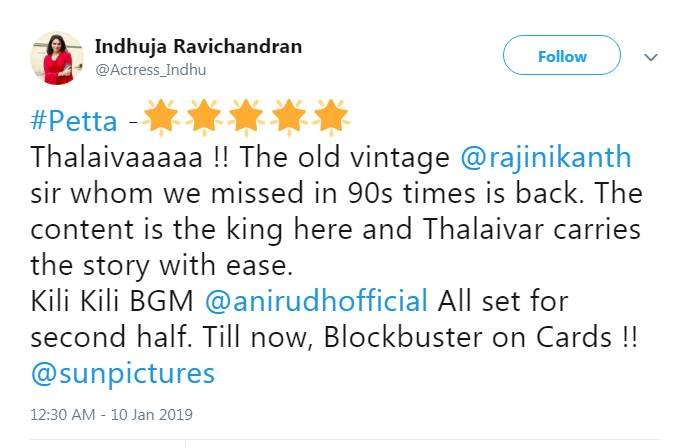 रजनीकांत की फिल्म को लेकर लोगों का कहना है कि फिल्म 90 के दशक में ले जाती है। फिल्म को ब्लॉकबस्टर कहा जा सकता है।