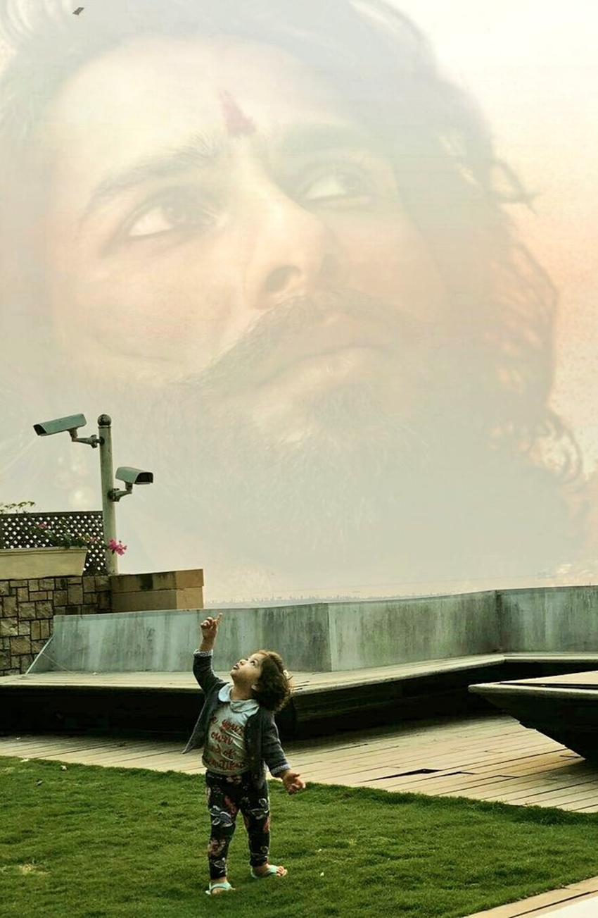 बॉलीवुड एक्टर शाहिद कपूर की पत्नी मीरा राजपूत ने अपनी बेटी मीशा की एक फोटो इंस्टाग्राम पर शेयर की है। इंस्टाग्राम पर शेयर की गई इस फोटो में मीशा काफी सुंदर और स्वीट नजर आ रही हैं। मीरा ने बेटी मीशा की फोटो को ‘Soar’ टाइटल के साथ पोस्ट किया है। वहीं विकी रतन नाम के एक फैन ने मीरा द्वारा पोस्ट की गई तस्वीर को थोड़ा एडिट कर दोबारा पोस्ट किया है। फैन द्वारा पोस्ट की गई फोटो सोशल मीडिया पर काफी वायरल हो रही है। इस फोटो में विकी ने फोटोशॉप के जरिए फिल्म पद्मावत में शाहिद कपूर के पोस्टर लुक को आसमान पर एडिट किया है।