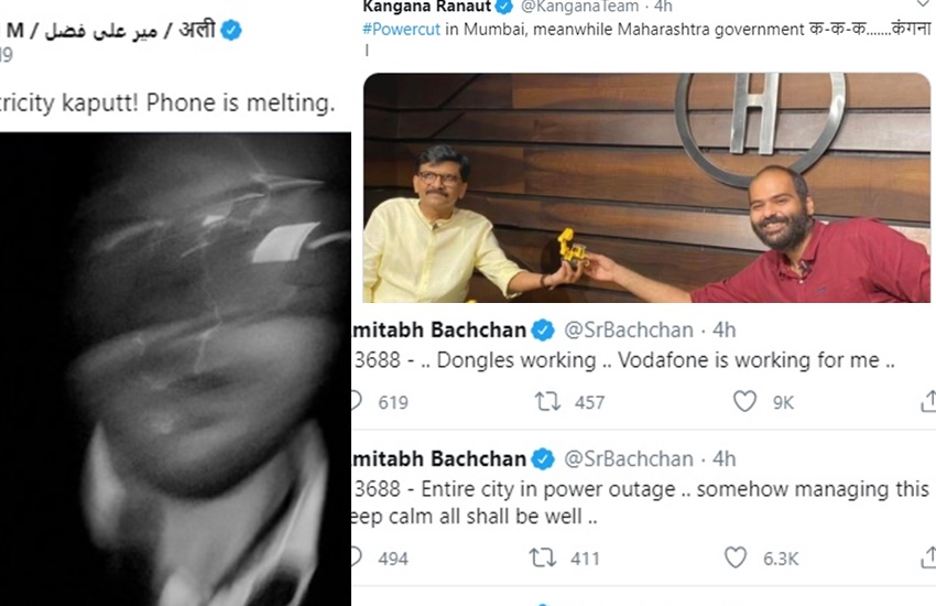 आज यानी 12 अक्टूबर की सुबह से ही मुंबई शहर की बत्ती गुल हो रखी है। अचानक बिजली कटौती का सामना होने के कारण जहां मुंबईकर्स परेशान नजर आ रहे हैं तो वहीं बॉलीवु़ सेलेब्स के रिएक्शन भी सामने आ रहे हैं। ग्रिड फेल होने के कारण मुंबई महानगर की बिजली कट गई है। ऐसे में अमिताभ बच्चन, अली फज़ल से लेकर कंगना रनौत तक ने ट्विटर पर मुंबई में बिजली जाने को लेकर पोस्ट किया।