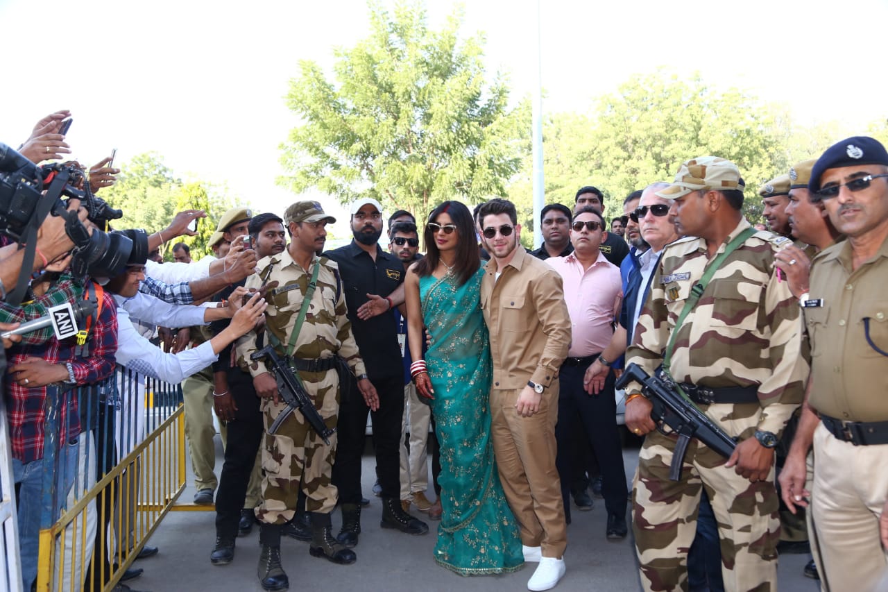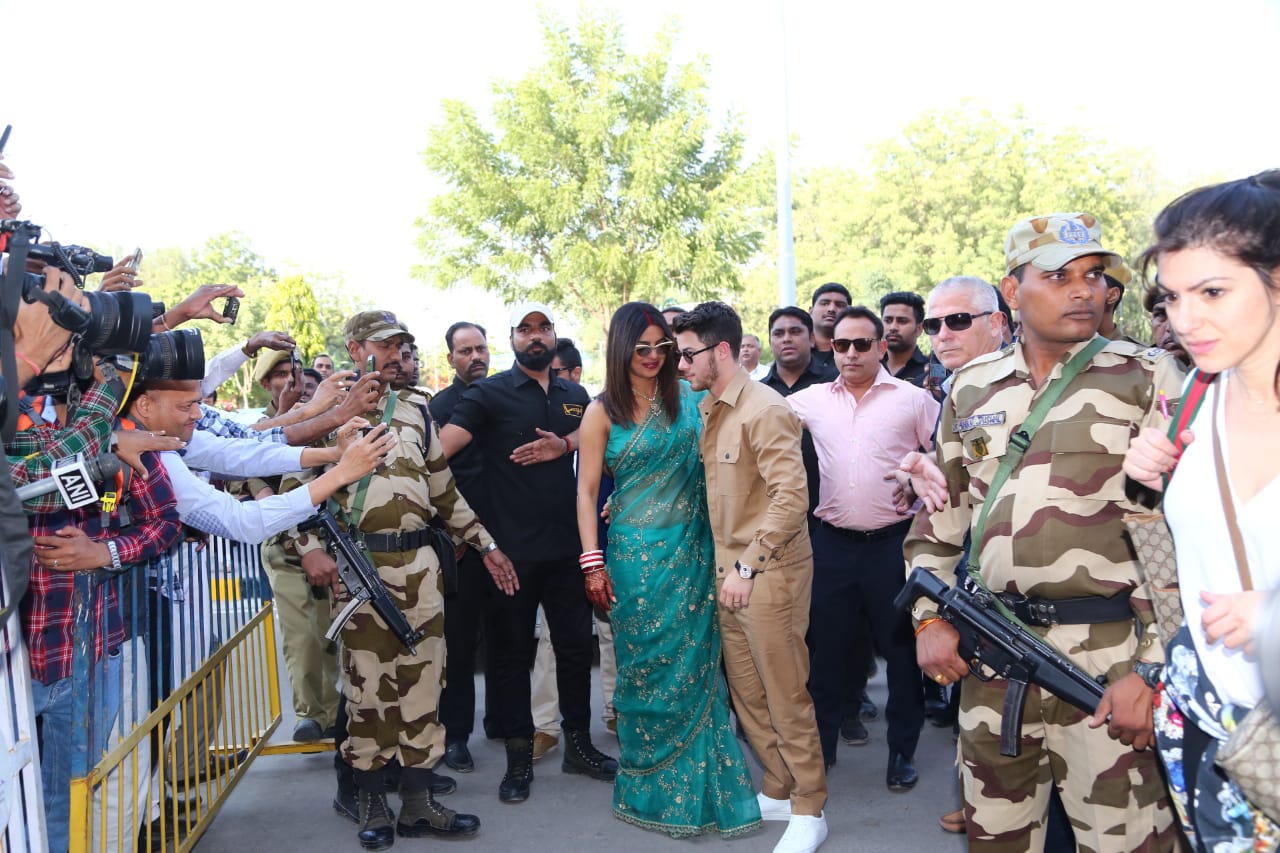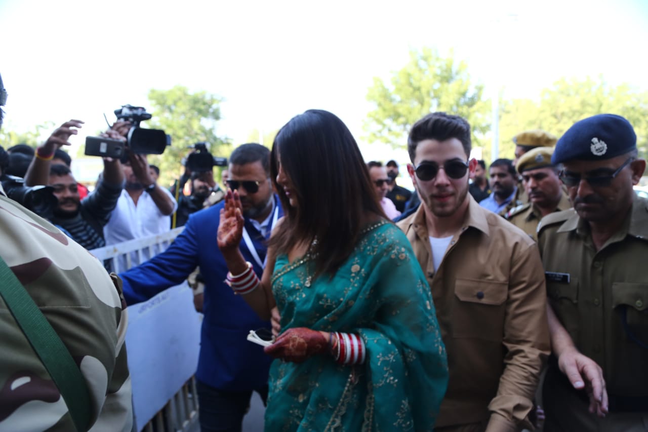 Priyanka Chopra-Nick Jonas Wedding: शादी के बाद पहली बार निक जोनस और प्रियंका चोपड़ा सामने आए। हरे रंग की साड़ी में प्रियंका बेहद खूबसूरत लग रही हैं तो वहीं ब्राउन कलर के सूट में निक भी हैंडसम दिख रहे हैं। जोधपुर के उम्मेद भवन पैलेस में शादी रचाने के बाद अब कपल रिसेप्शन पार्टी होस्ट करेंगे। माना जा रहा है कि देसी गर्ल और हॉलीवुड पॉप स्टार अब दिल्ली में मेहमानों और दोस्तों के लिए पार्टी को होस्ट करेंगे।