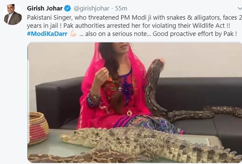 बता दें कि मोदी सरकार के जम्मू-कश्मीर से आर्टिकल 370 हटाए जाने के बाद सिंगर रबी पीरजादा ने अजगर और सांपों के साथ एक वीडियो पोस्ट किया था। वीडियो में सिंगर ने पीएम मोदी को धमकी देते हुए कहा था, ”मैं एक कश्मीरी महिला, भारत के लिए अपने सांपों को तैयार कर रही हूं। यह गिफ्ट खास तौर पर मोदी के लिए है।”
