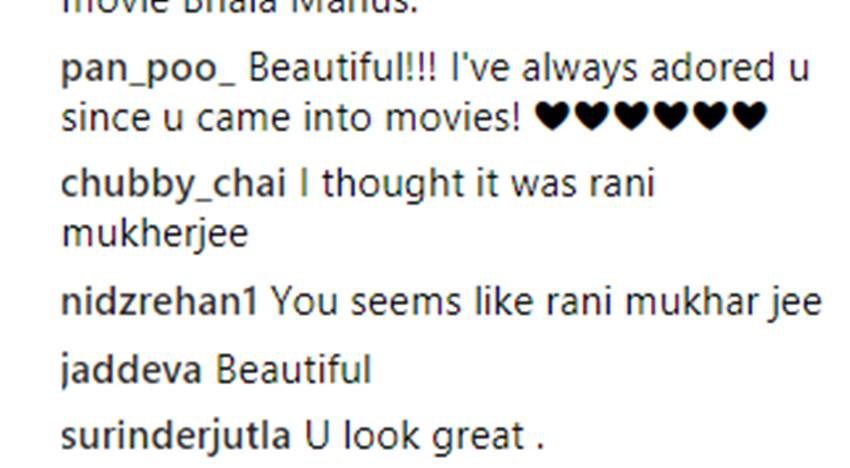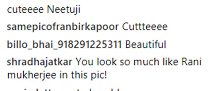 नीतू की इस तस्वीर को देख कर लोग उन्हें रानी कहने लगे। एक कमेंट में यूजर ने लिखा- आप यहां रानी मुखर्जी की तरह लग रही हैं। आप हमेंशा खूबसूरत लगती हैं। दूसरे यूजर ने लिखा- आप कापी हद तक यहां रानी मुखर्जी की तरह दिखाई पड़ रही हैं।
