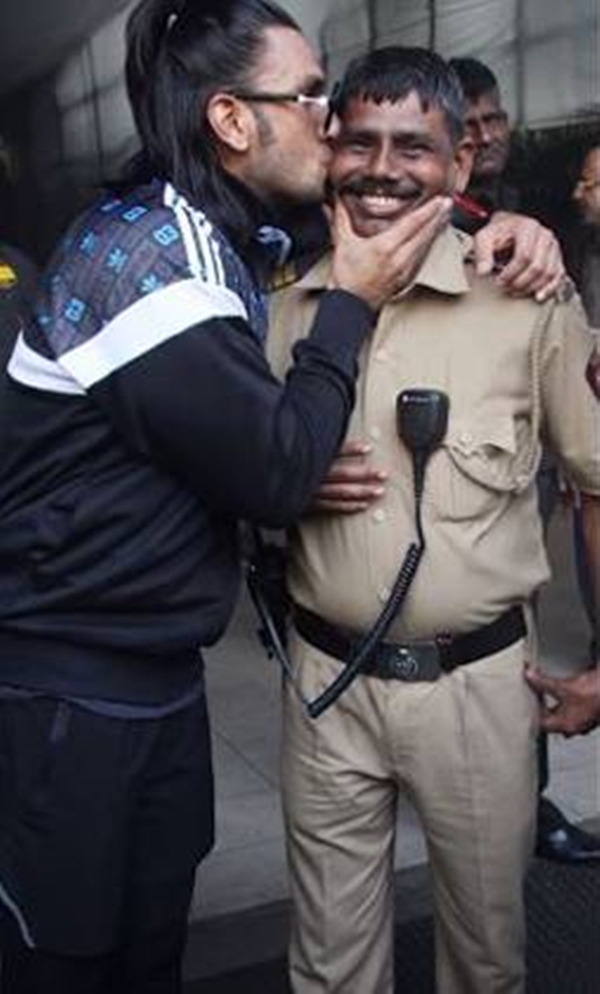 असल में रणवीर जिम में वर्कआउट करने के बाद निकल रहे थे और हमेशा की तरह उनके फैन्स बाहर खड़े उनके निकलने का इंतजार कर रहे थे। रणवीर ने अपने फैन्स की तरफ हाथ हिलाया जिनमें से कुछ उनके साथ तस्वीरें लेना चाहते थे और कुछ उनके साथ हाथ मिलाना चाहते थे। हालांकि इस फैन प्रेम के बीच लोगों को इस बात का बिलकुल अंदाजा नहीं लगा कि रणवीर जल्दी में हैं और उन्हें वहां से निकलना है। तभी ड्यूटी पर मौजूद एक कॉन्सटेबल वहां पहुंच गया और उसने भीड़ को इधर-उधर करके रणवीर के लिए रास्ता बनाया। रामलीला स्टार रणवीर इससे इतना ज्यादा प्रभावित हुए कि उन्होंने पुलिस वाले को गाल पर किस कर लिया। यह वीडियो यू-ट्यूब पर मौजूद है और खूब वायरल हो रहा है।