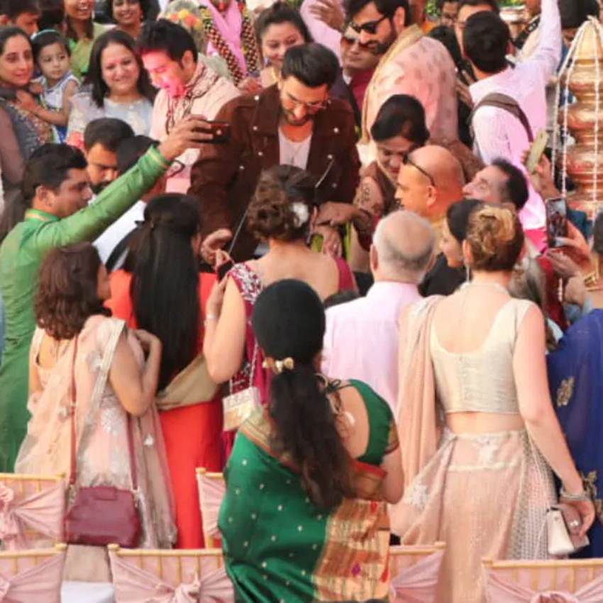 रणवीर सिंह को अचानक से देखकर लोगों के बीच अफरा-तफरी मच गई। सोशल मीडिया पर वायरल हो रहे वीडियो में देख सकते हैं कि सभी मेहमान एक्टर के संग एक तस्वीर लेने के लिए बेताब नजर आ रहे हैं।