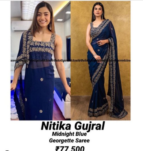 बता दें कि रश्मिका की ये साड़ी जितनी खूबसूरत है उतनी ही कीमती भी है। रश्मिका की ये साड़ी फैशन डिजाइनर निकिता गुजराल के कलेक्शन की है। इस साड़ी की कीमत 77,500 रुपये है। इस कोड़ावा जॉर्जेट फैब्रिक वाली साड़ी में रश्मिका वाकई काफी कमाल लग रही हैं।