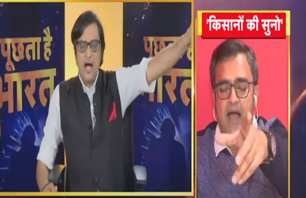अर्नब आगे कहते हैं-आपको किसकी बात माननी चाहिए? किसानों के लिए 24 घंटा फिक्र करने वाले प्रधानमंत्री नरेंद्र मोदी की? या फिर योगेंद्र यादव की? जो आज अगर चुनाव हो तो उनको सौ वोट के भी लाले पड़ जाएं? ये अपने आप को किसान नेता कह रहे हैं। इसके बाद गुस्स में पैनलिस्ट भी बोल पड़े अब हमारी भी सुन लो। अरे हमें भी अब 30 सेकिंड दे दो।