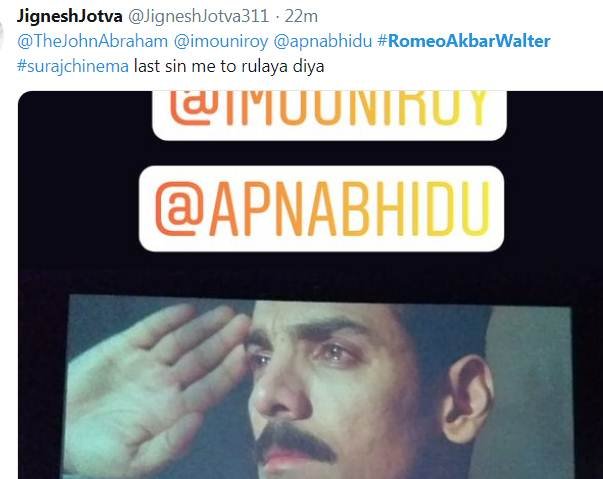 जॉन की RAW को देखने के लिए फैन्स सिनेमाघरों का रुख कर रहे हैं। लोगों को दिल जॉन की फिल्म जीतने में कामयाब हो रही है। फिल्म का आखिरी सीन शेयर कर लोग कह रहे हैं कि जॉन ने रूला दिया।