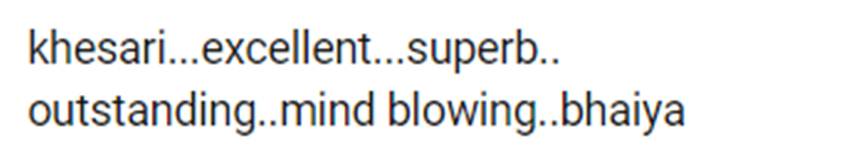 खेसारी-सपना के वीडियो के कमेंट बॉक्स में लोगों ने इस जोड़ी की जमकर तारीफ की है। एक सोशल मीडिया यूजर ने लिखा- जियो खेसारी भइया काश आप यूपी में होते। वहीं एक अन्य यूजर ने लिखा-सुपर खेसारी जी क्या बात है, आपका हर शो और फिल्म मस्त होता है। वहीं एक अन्य यूजर लिखता है- सपना और खेसारी दोनों भारत के ऊर्जावान डांसर हैं और स्टेज हिला देते हैं।
