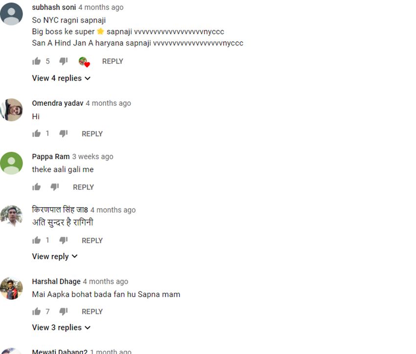 सपना की ये रागिनी और साथ में उनका ये डांस बेहद पसंद किया जा रहा है। कमेंट बॉक्स पर फैन्स कहते नजर आ रहे हैं कि सपना जबरदस्त एंटरटेनर हैं। एक फैन ने कहा कि वह अपने डांस और म्यूजिक के टैलेंट से सभी का दिल जीत लेती हैं। तो एक यूजर लिखता- सपना की रागिनी बहुत शानदार होती हैं। देखें सपना की ये रागिनी:-