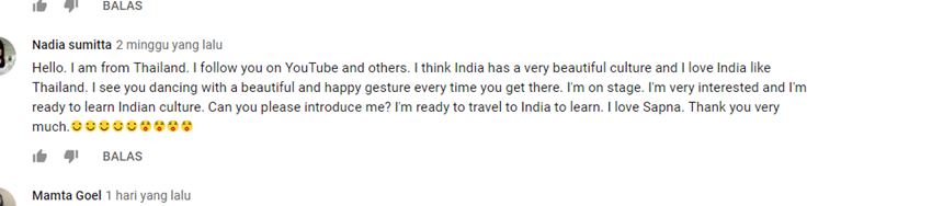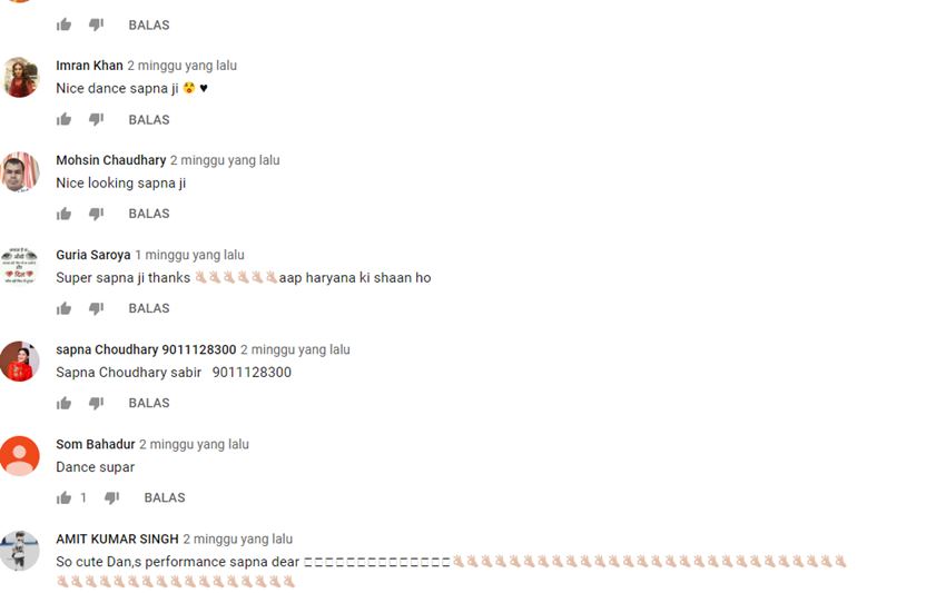 सपना के डांस की तारीफें करते हुए एक फैन ने लिखा-‘सपना जी ये अब तक का बेस्ट परफॉर्मेंस था।’ सपना का एक चाहने वाला लिखता- ‘आप कितना अच्छा नाचती हो।’ सपना को देश से बाहर भी खूब पसंद किया जाता है। ऐसे में सपना की एक फैन कहती कि वह थाईलैंड से है और सपना को बहुत पसंद करती है। देखें सपना चौधरी का ये धमाकेदार डांस वीडियो:-