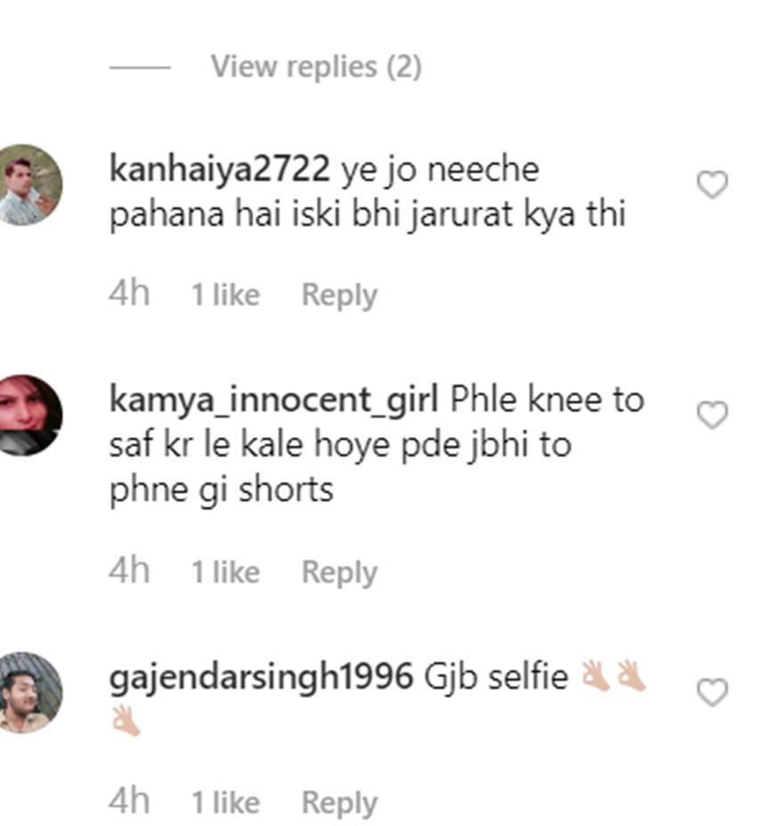 एक यूजर कहता -‘ये जो नीचे पहना है इसकी भी क्या जरूरत थी।’ तो किसी ने मजाक करते हुए लिखा- ‘पहले नीं तो साफ कर लो, काले हुए पड़े हैं।’ लेकिन इन निगेटिव कमेंट्स के बीच सपना के फैंस ने उनका साथ नहीं छोड़ा ऐसे में सपना की एक फैन कहती नजर आई कि ‘सपना इन निगेटिव कमेंट्स पर ध्यान मत दो जो मन में आए वो करो। आप बहुत अच्छी लग रही हो।’