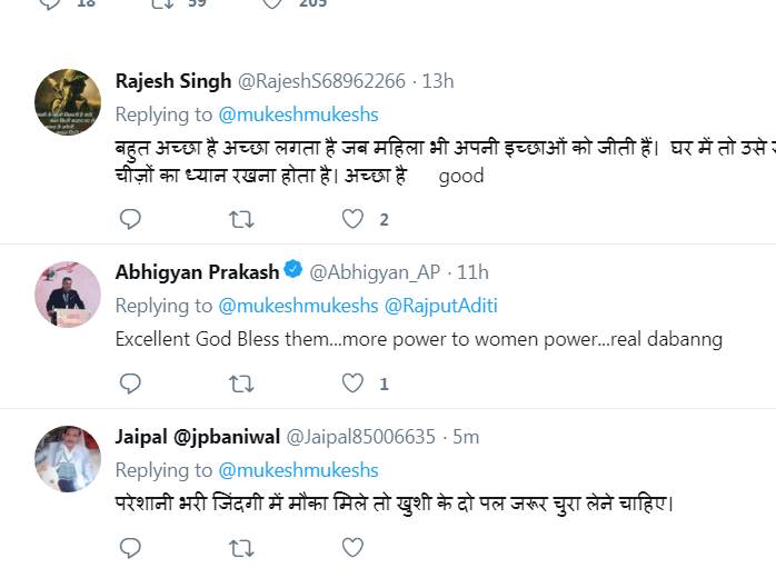 वीडियो में देख सकते हैं कि वर्दी पहनें महिला आईपीएस अधिकारी बेनिता मैरी जेकर महिला पुलिसकर्मियों संग थिरकते हुए नजर आ रही हैं। यह वीडियो महिलाओं को प्रोत्साहित करने के लिए आयोजित किया गया कार्यक्रम सुनो सहेली के दौरान का बताया जा रहा है। वीडियो को देखने के बाद लोगों ने अपना रिएक्शन भी जाहिर किया है। एक ट्विटर यूजर लिखता है- बहुत अच्छा लगता है जब महिलाएं भी अपनी इच्छाओं को जीती हैं। वहीं एक अन्य यूजर लिखता है- बहुत अच्छा। महिला शक्ति.. रियल दबंग।