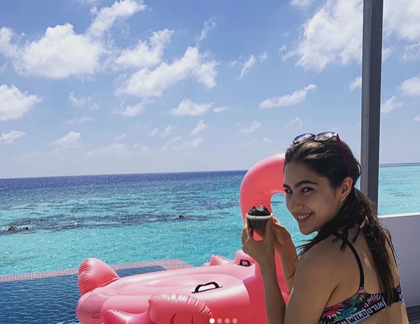 समंदर किनारे चॉकलेट कपकेक का मजा लेतीं सारा अली खान। सारा सैफ अली खान और अमृता सिंह की बेटी हैं। इन दिनों वह बॉलीवुड की नामी एक्ट्रेस की लिस्ट में शुमार हो चुकी हैं।