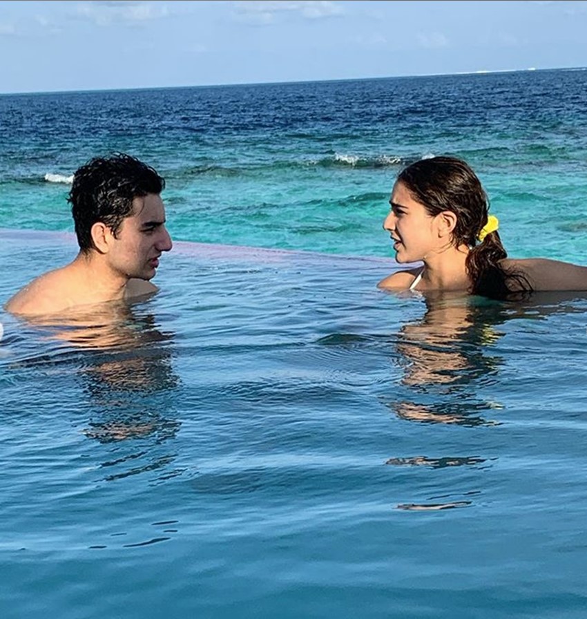 सारा इब्राहिम एक दूसरे के साथ तस्वीरें शेयर करते रहते हैं। कुछ दिनों पहले उन्होंने एक फोटोशूट भी कराया था। क्रिसमस के मौके पर दोनों ने ये शूट कराया था। इब्राहिम इन तस्वीरों में शर्टलेस नजर आए थे। देखें सारा और इब्राहिम की मालदीव की तस्वीरें:-